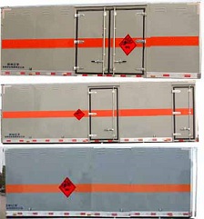 | 整车说明: | 厢体顶部密封,不可开启.厢体可选装不同形式的侧开门或无侧门.随底盘选装驾驶室。运送爆炸品的品名:黑火药,压缩黑火药,电(非电)引爆雷管,爆破炸药,导爆索,点燃导火索.运送爆炸品的项号:1.1D,1.1D,1.1B,1.1D,1.4G.发动机ISD210 50,ISD190 50,ISD180 50分别对应的油耗关系为:27.3,27.4,27.6.当整车长度为8580mm时,轴距4700mm、5000mm与后悬2450mm,2150mm一一对应.当整车长度为8280mm时,轴距4500mm、4200mm与后悬2350mm,2650mm一一对应.防护材料:Q235A碳钢,连接方式:左右侧面防护均采用螺栓连接,后下部防护与车架采用焊接连接,后部防护断面尺寸(mm):120×50,后部防护离地高度(mm):450。安装限速装置,限速80km/h。该车安装带有卫星定位功能的行驶记录仪。仅采用前盘制动器和安装ABS以及前置消声器的底盘。仅采用子午线轮胎。ABS型号:3631010-C2000,4460046440;生产厂家:东科克诺尔商用车制动系统(十堰)有限公司,威伯科汽车控制系统(中国)有限公司. | ||